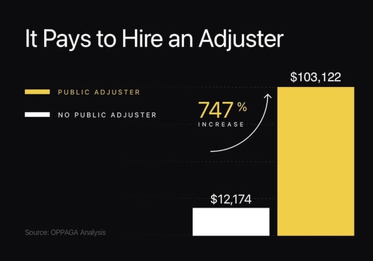 Using a public claims adjuster increases insurance claim payouts by 747% on average, according to a government study.